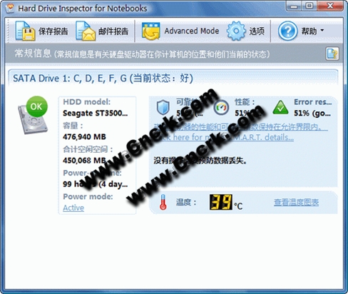 Hard Drive Inspector Notebook V3.25.231 多国语言绿色特别版 Hard Drive Inspector 监视硬盘错误并且接收警报。Hard Drive Inspector检查变化并实施诊断。例如:驱动器旋转时间增加以及数次重试才能运转驱动器通常意味着发动机和/或者轴存在可以导致数据丢失的错误。HardDrive Inspector可以访问S.M.A.R.T.数据,处理该数据并且在该硬盘的使用不再安全的时候通知你。该软件是完全可定制的,并且可以提供实时监视S.M.A.R.T.的权限