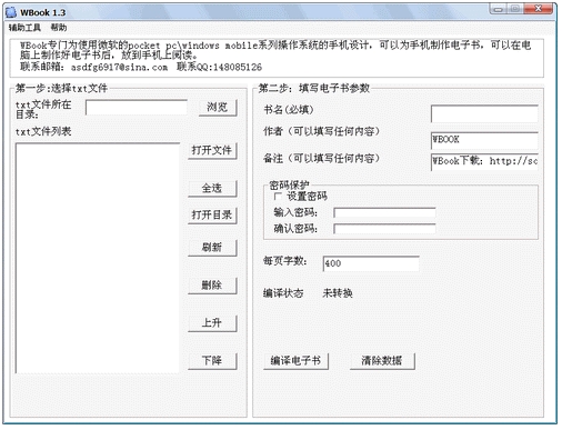 WBook是专门为使用微软的pocket pc2003、windows mobile5.0、6.0操作系统的手机设计的电子书制作软件,本软件可以为上述操作系统的手机制作电子书,放到手机上观看。有了这个软件,就可以将网上的电子书资源自由的安装到手机观看,为我们的生活增添无穷的乐趣