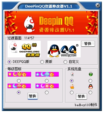 DEEPQQ资源修改器1.3 1.去除07版的登陆界面 只有3个08版登陆界面 2.08版登陆界面显示状态信息 3.精简程序代码优化程序 4.添加新的过渡图片