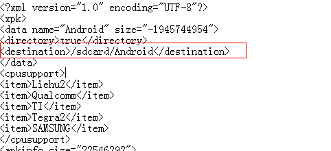 manifest.xml是配置文件(里面保存了数据包会拷贝到手机存储卡的什么位置)