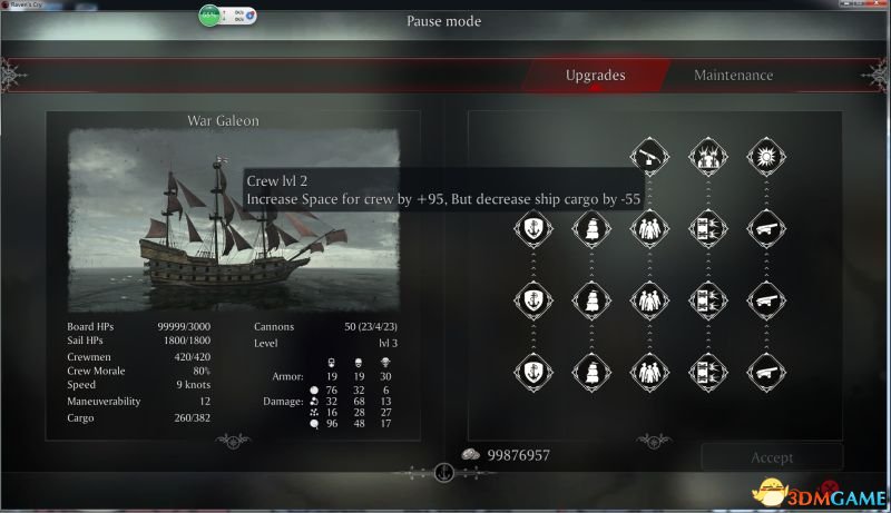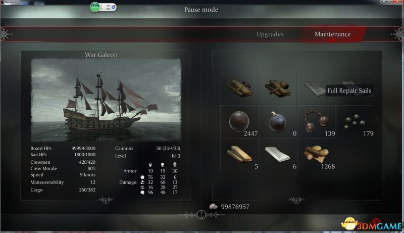 在Shipwright那里可以对船只进行升级,每只船的升级内容一样,都分为四种:增加船体HP;