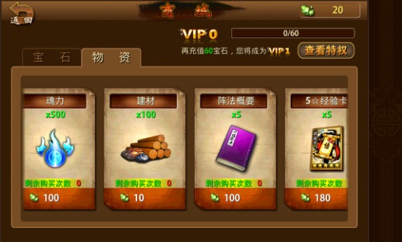 2. 商城调整: 增加出售魂力,阵法书,经验卡,建材等资源,少了宝石即可玩的更痛快!