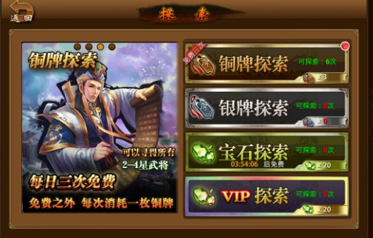 5. 抽将调整: 原有宝石抽将开出四星五星将领和将领碎片,蓝色紫色装备和装备碎片;增加vip抽将,vip5或者等级≥40才可以开启,抽将费用提高,可开出五星,六星高级将领和碎片,紫色橙色装备以及碎片。