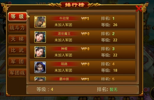7. 排行榜调整:增加竞技场排行榜,武斗排行榜,军团战排行榜