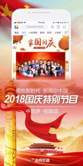 【国庆七天假特别节目看不停】《拥抱新时代 祝福你中国》——“中国梦?祖国颂”2018国庆特别节目,“央视财经?改革开放40年”十一大直播,首届中国相声小品大赛,中超联赛第25轮,中国网球公开赛决赛,F1日本站,英超联赛第8轮,旅游中华,健康总动员——糖尿病特辑,全国景区直播。