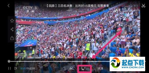 视频全屏后,再次点击视频,下方会显示一些功能图标。点击下方的投屏图标。图标位于视频清晰度前面。