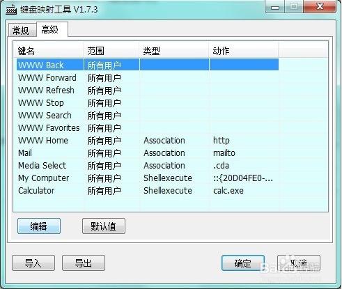 注意:如要将 Power/Sleep 这两个键重定义,在XP 下需要在控制面板/电源选项/高级/电源按钮设置中改为“不采取任何措施”。而在 Windows2000 下不能完全禁用其原功能,导入 XP 的某些注册表项目可以实现,但我还没有整理清楚。
