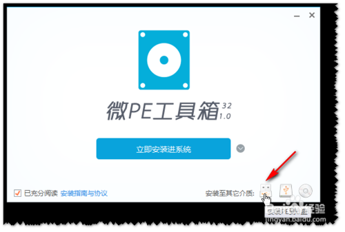 之后双击软件运行,在”安装至其它介质“后,选择第一个图标--安装PE至U盘。