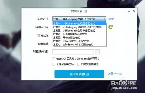 第一种安装到U盘,提供了7中方案,个人建议使用软件推荐的方案。