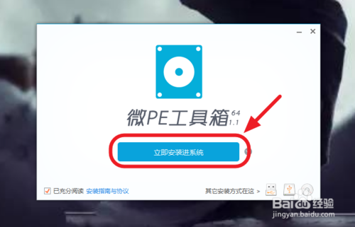打开下载好的软件,微pe工具箱提供四种安装方式。