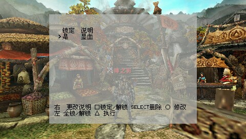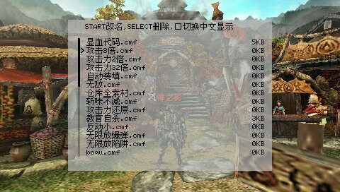 断开USB连接,在PSP上随便进入一个游戏,金手指就激活了,按音符键“?”可呼出金手指。