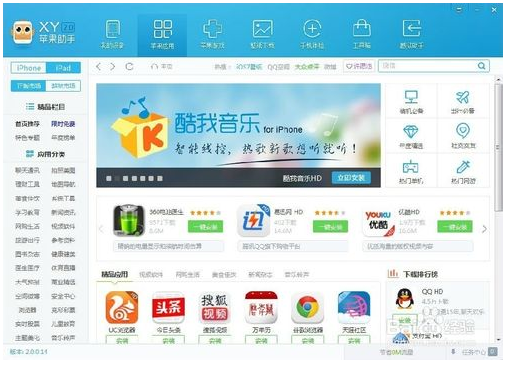 5、安装好之后就可以之间把你的苹果设备连上电脑下载游戏软件, 只要你的设备连上电脑会自动帮您安装XY苹果助手手机端,更加方便你的使用。