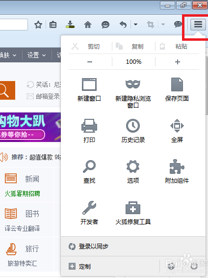 首先点击浏览器右上方工具栏的“打开菜单按钮”