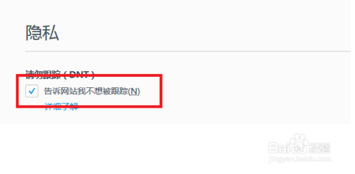 如果不想留下浏览记录,可以点击”隐私“页面上方的”请勿跟踪“一栏里的”告诉网站我不想被跟踪。