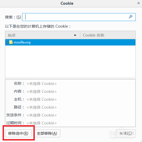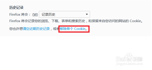 如果想要点对点单个删除cookie的话,点击“历史记录”一栏里的“移除单个cookie”然后在下拉菜单里找到你想要移除的cookie,点击“移除选中”