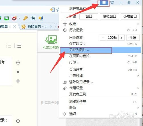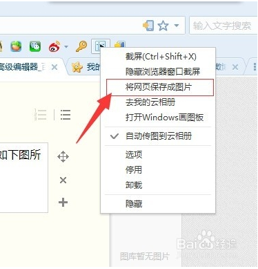 直接点击截图图标是当前屏幕内截图,可以用右键单击截图图标选择“将网页保存成图片”。