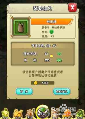 给装备升级,提高装备的属性.强化等级越高,消耗的石币数越多,可自动强化至最高级.强化将提升附魔上限。炼化或者出售将返还强化花费。