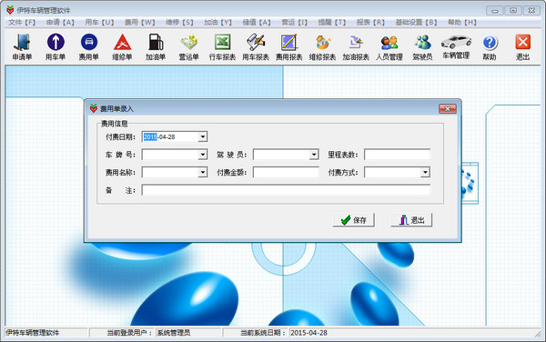 3.费用单记录车辆的洗车费,维修费,保养费等,费用名称可以自定义设置。