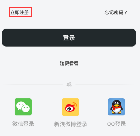2、然后注册自己的账号,也可以微信、微博和qq登陆。
