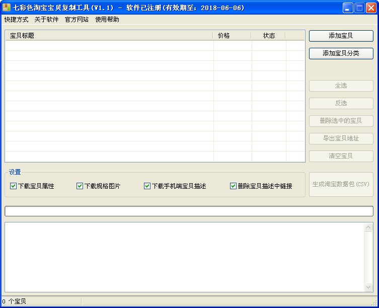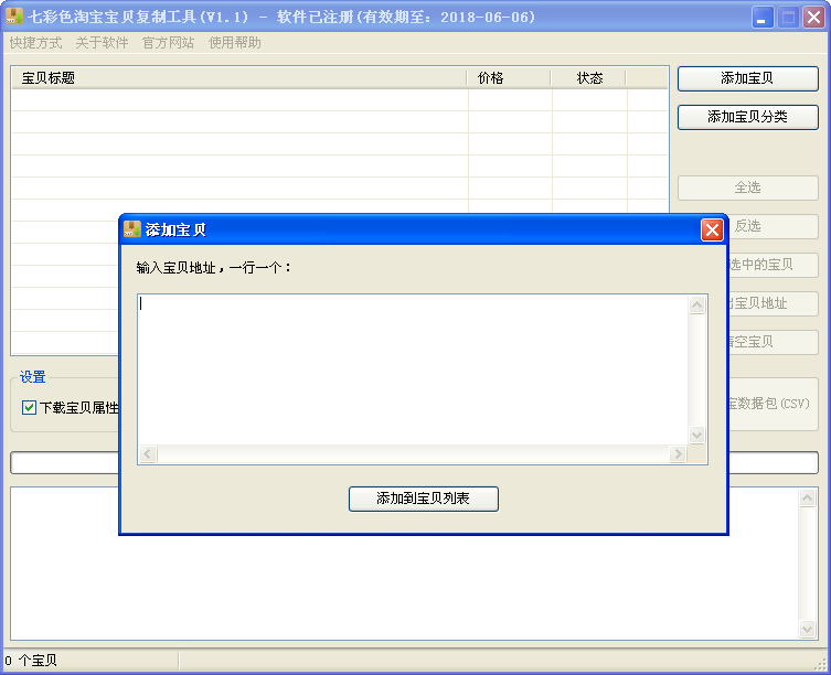 淘宝宝贝复制软件免费是一款绿色免费的淘宝宝贝复制工具。该工具可以帮助淘宝店主轻松一次添加多个宝贝地址进行批量下载宝贝、复制宝贝,节省体力,提高效率。