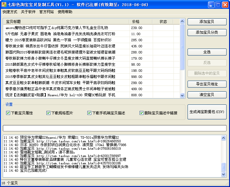 宝贝下载完成后自动生成淘宝数据包(CSV),导入淘宝助理就可以上传到自己店铺。