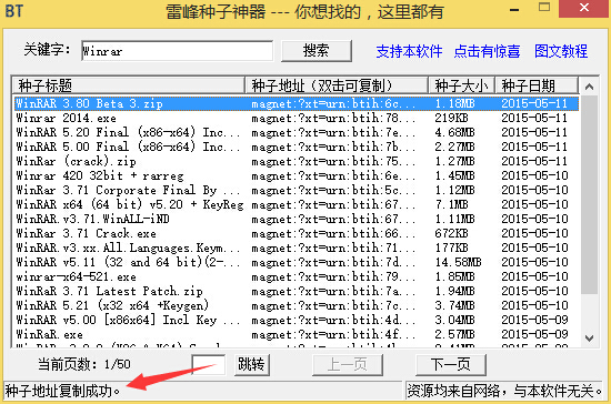 雷峰种子神器是一款免费绿色的BT种子搜索器,该工具不仅小巧绿色,还可以帮助用户快速寻找到网上的视频电影资源,可支持边看边下,有需要的可以下载。它的搜索速度最短只需要2秒甚至1秒,速度比网页搜索大约快3倍,是最简单快捷的种子搜索神器!