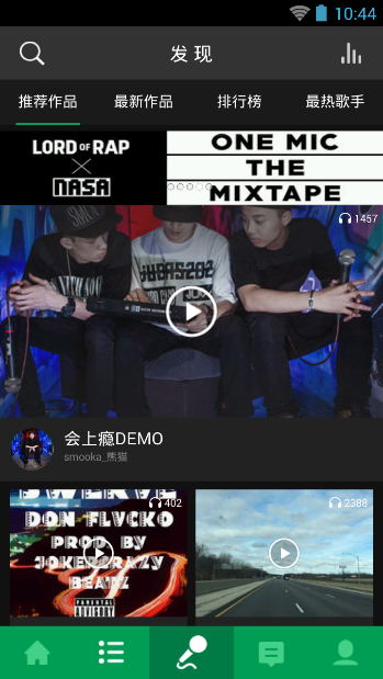 主界面,推荐作品都是较高质量的说唱音乐,不妨点击试听下
