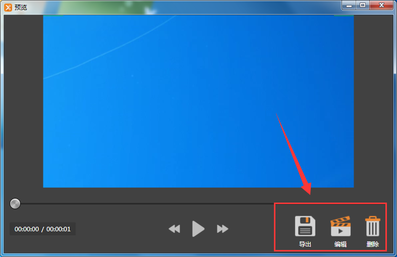 5、之后它剪辑师让我们预览录制的视频,如果感觉不错那么点击“导出”将其保存就可以了,如果还想对其进行加工,那么点击“编辑”即可来到视频编辑界面。