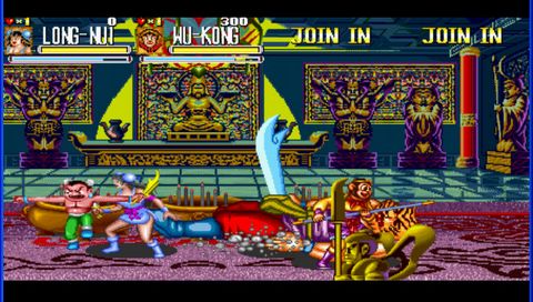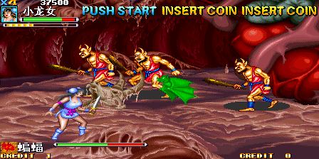 本关的小兵那是相当麻烦,特别是那种螃蟹怪。螃蟹怪浑身闪光一下后会纵轴错位攻击,习惯了小怪和自己不位于一条直线就不会被打到的你千万要小心,还有鲤鱼怪会变成鱼撞人,虽然是直线容易破解,但是被打到往往就是N连击扣血相当厉害。同时还需要注意的是章鱼女怪,她回远程放波攻击。相比之下虾兵还好说了。