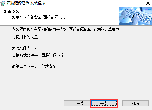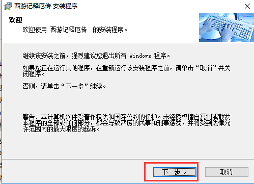 3、双击西游记释厄传exe安装文件,进入安装向导界面,点击下一步