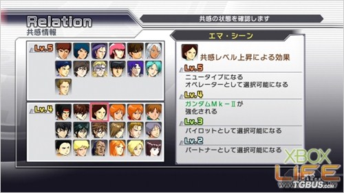 提高共感值除了可以解锁人物的使用权、取得对应MS的特殊装备等好处外,部份チャプターミッション(剧情任务)与ヒストリーミッション(历史任务)需要人物共感值达到4或5以上才能进行。