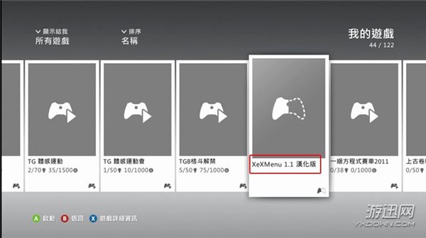 将拷贝好的U盘插入Xbox360的USB接口,打开Xbox360,在我的游戏中找到XeXMenu并打开。