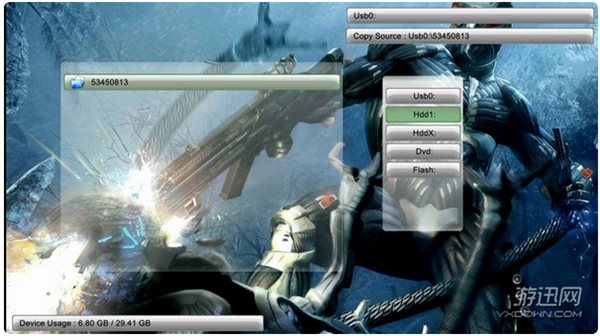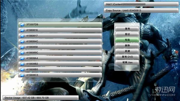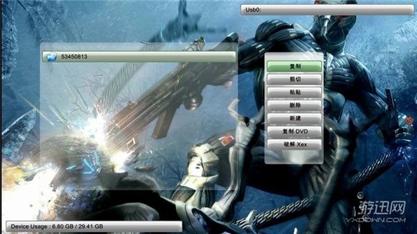 按手柄“LB”键,直到屏幕显示U盘里的文件,按手柄“Y”键,选择复制,按“A”键