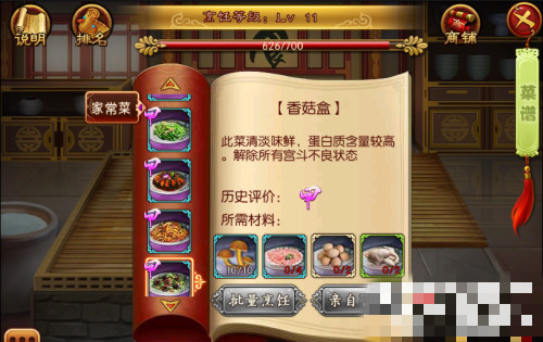 25、香菇盒:油+水+盐+酱+水(评分100/甲)解除所有宫斗的不良状态(不要卖)