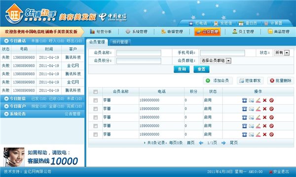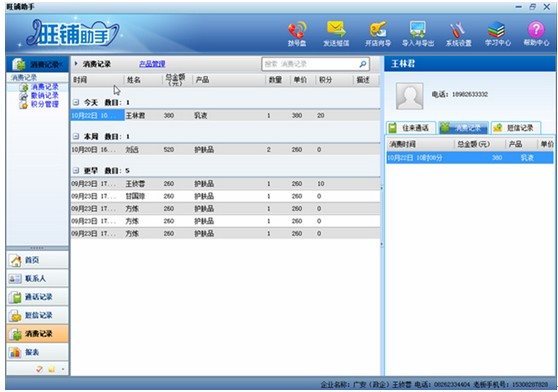 旺铺助手是针对成长型企业、商铺、专业市场的一款客户信息管理产品,通过融合移动、固话和宽带业务能力, 以PC客户端和手机客户端应用为载体,为客户提供客户资料管理、消费管理、话务管理、来电弹屏、点击拨号、挂机短信、短信群发、多号码数据共享、统计查询等功能的应用服务。