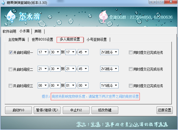 3.设置一个游戏重启时间(启动辅助到游戏重启的时间段内喂养的是对方的蝶妖,当游戏重启完成后就开始喂养自己账号的蝶妖了);