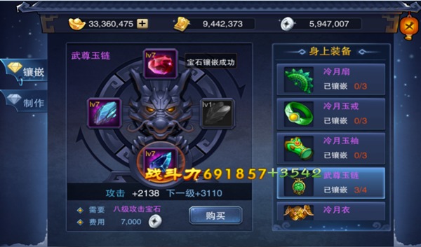 每件装备最多可镶嵌4个宝石,不需要打孔,装备镶嵌宝石数量与装备等级挂钩