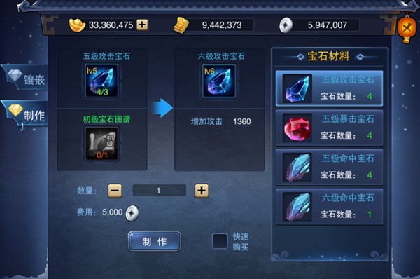 使用制作材料可以把低级宝石可制作成高级宝石;五级及以上的宝石制作需要宝石图谱,部分6、7级宝石也可以在商城购买,目前商城最高可以购买到7级宝石哦!