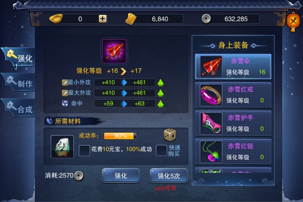 强化装备需要消耗强化石,装备强化等级越高,属性越高。
