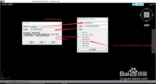 6.打开安装好的天正软件,再打开注册机,按图中文字说明,一步步操作。如果你的cad软件也是破解的,那么这个一定难不倒你。