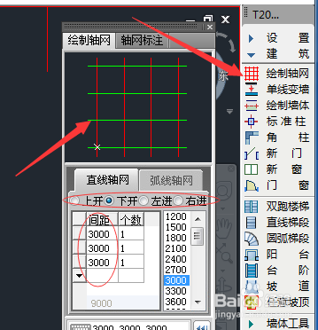 1.轴线和墙体:首先应该,点击工具栏中的“绘制轴线”,这是第一步,轴线绘应该依据房屋的墙体进行绘制,这个可以为之后绘制墙体提供方便,只需按图示操作即可。
