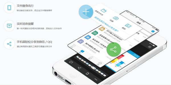 微信、QQ轻松分享文件,无需下载就可直接访问,告别消耗流量的手机文件传送,第三方应用中的文件可以直接保存至亿方云360度的企业文件管理机制