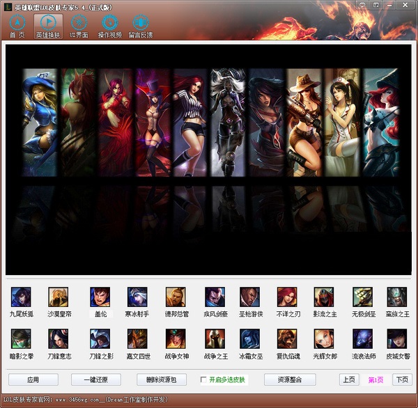 1、一键换肤功能,包括自制皮肤和官方资源等,2、UI界面换肤等