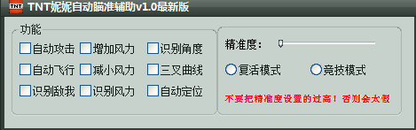 TNT妮妮自动瞄准辅助是一款功能强大的tnt弹道轨迹辅助,该辅助操作简单并且完全免费,可为玩家提供自动攻击增加风力、识别角度、自动飞行、减小风力等多种强大游戏功能,帮助玩家更方便的瞄准目标,让玩家轻松击败对手获取游戏胜利。
