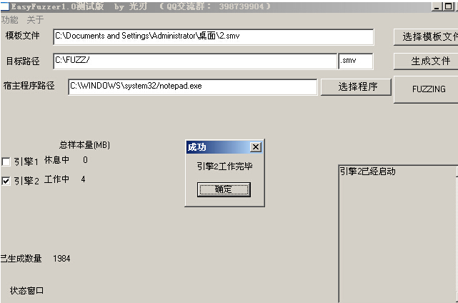模板文件:选取正常的文件(在此文件基础上进行变异)目标路径:存放变异样本的路径。选日志前一定要保证路径存在.