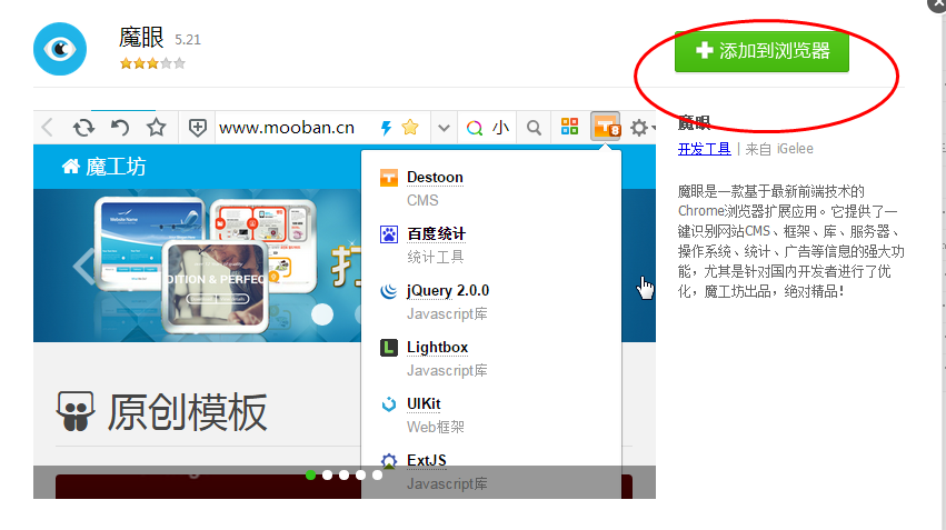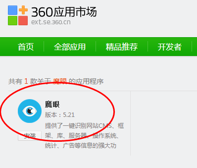魔眼是一款基于最新前端技术的Chrome浏览器扩展应用。它提供了一键识别网站CMS、框架、库、服务器、操作系统、统计、广告等信息的强大功能,尤其是针对国内开发者进行了优化,魔工坊出品,绝对精品!【使用方法】