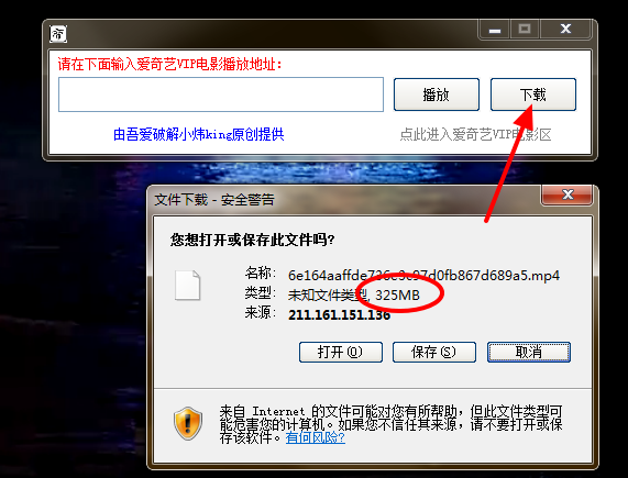 6、同理,复制播放链接,点击后面的【下载】按钮,即可弹出下载对话框,电影文件只有325MB,普清无误,下了到手机上看吧,还是不错的哦!