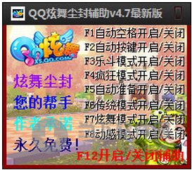 QQ炫舞尘封辅助是一款功能强大的QQ炫舞挂,该辅助工具用法简单且界面简洁,玩家只要根据需要点击设置自动空格、自动按键、乐斗模式、疯狂模式等功能,就可以让你轻松挑战高难度。