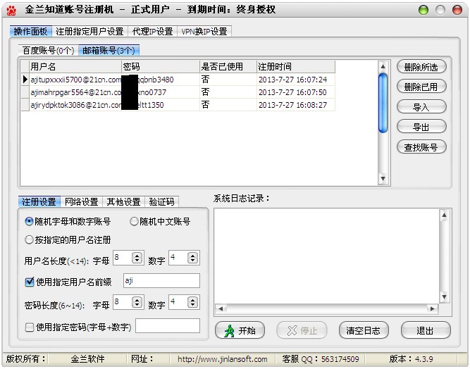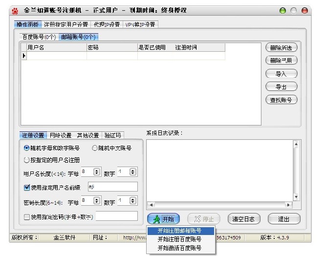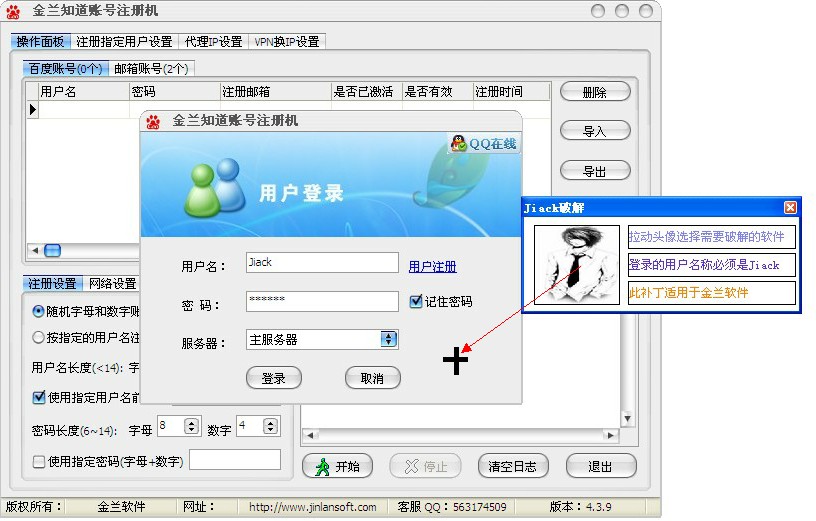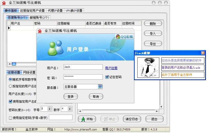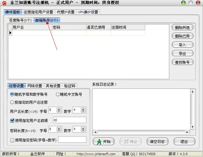或者你也可以去网上另外下载一个“金兰知道账号注册机”的破解版。当然也可以将别的邮箱注册机或者手动注册的邮箱账号以如下格式