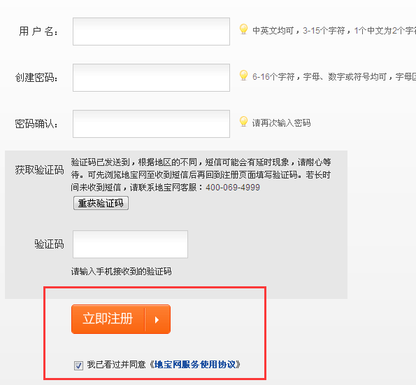 输入验证码后,点“立即注册”。